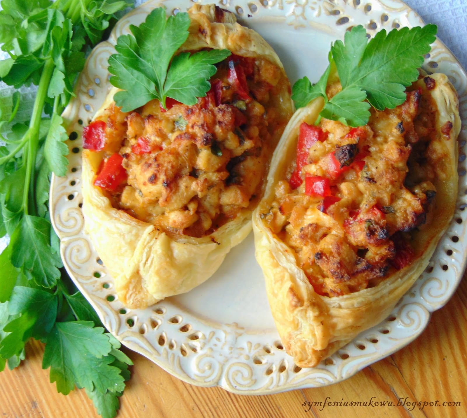 Moja propozycja jest bogata w składniki i użyłam też eksperymentalnie mięsa mielonego, które jak najbardziej sprawdziło się w pizzerinkach, ale oczywiście dodatki mogą być dowolne - co kto lubi ;)